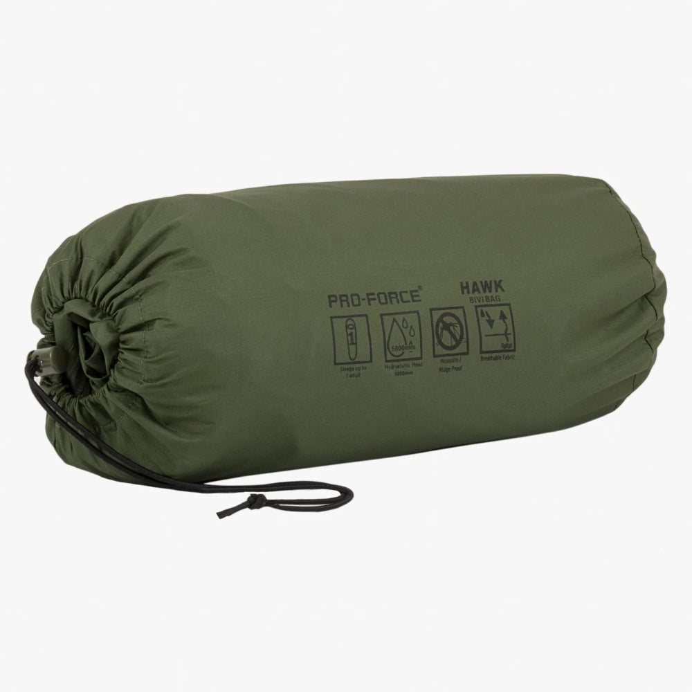 The Hawk bivvy bag is ideal for use as a shelter if you're travelling light or solo without the hassle of carrying and pitching a tent. Designed with a high quality specification and material, this bivi will keep you dry and comfortable.
